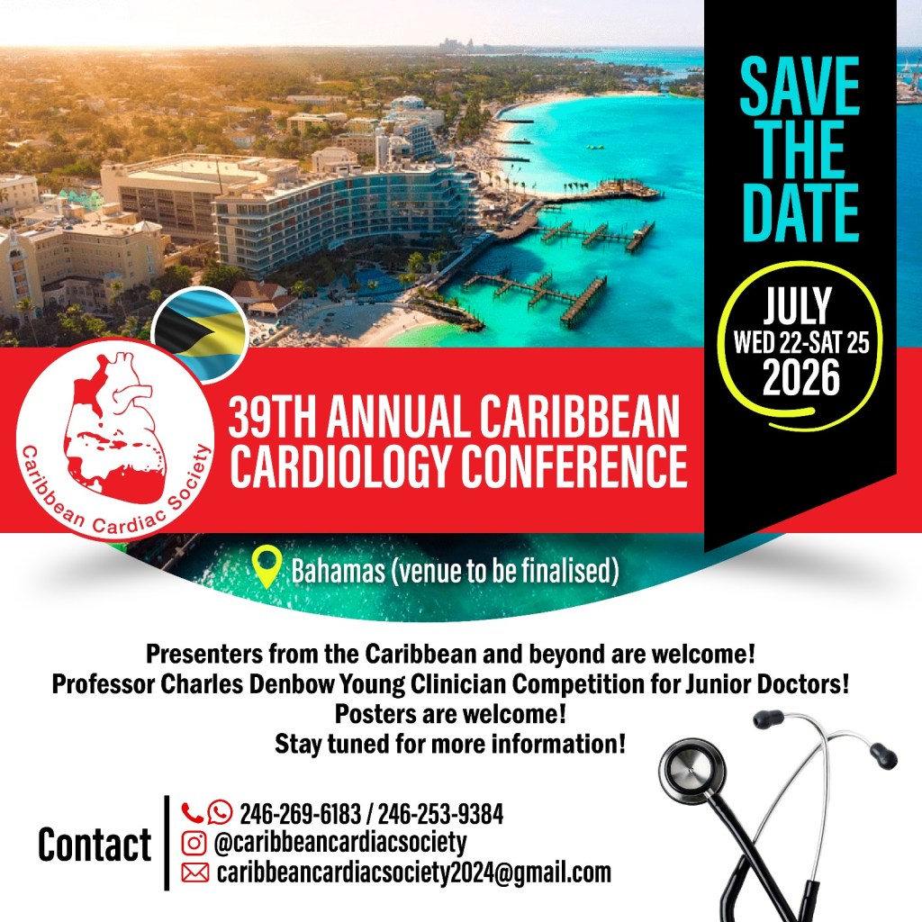 We are going to the Bahamas! The Caribbean Cardiac society is pleased to announce that our 2026 conference will in the lovely, beautiful Bahamas July 22-25, 2026? Where? Well that is to be announced!